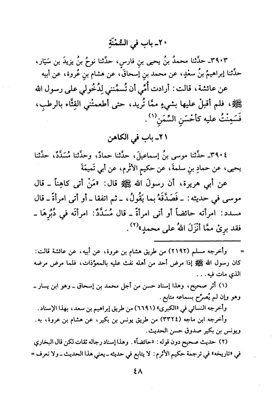 عن أبي هريرة، أن رسولَ الله - صلَّى الله عليه وسلم - قال: "مَنْ أتى كاهِناً -قال موسى في حديثه:- فَصَدَّقَهُ بما يَقُولُ، -ثم اتفقا- أو أتى امرأةً -قال مسدَّدٌ: امرأته حائضاً أو أتى امرأةً- قال مُسَدَّدٌ: امرأتَه في دُبُرِهَا- فقد برِئ مِمَّا أنْزَلَ اللهُ على محمدِ" (¬٢).