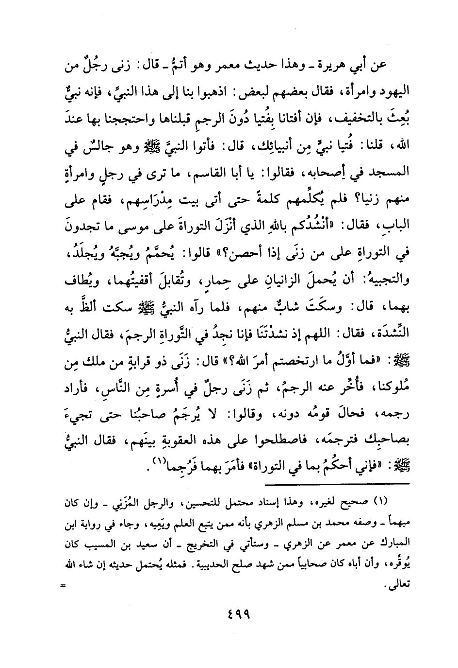 عن أبي هريرة -وهذا حديث معمر وهو أتمُّ- قال: زنى رجُلٌ من