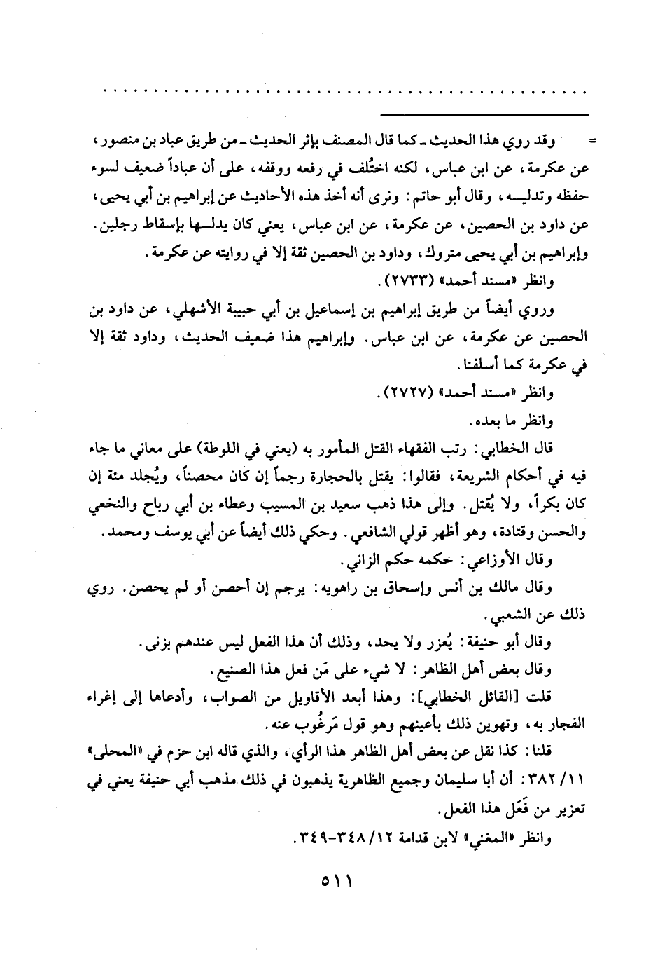 قلت [القائل الخطابي]: وهذا أبعد الأقاويل من الصواب، وأدعاها إلى إغراء الفجار به، وتهوين ذلك بأعينهم وهو قول مَرغُوب عنه.