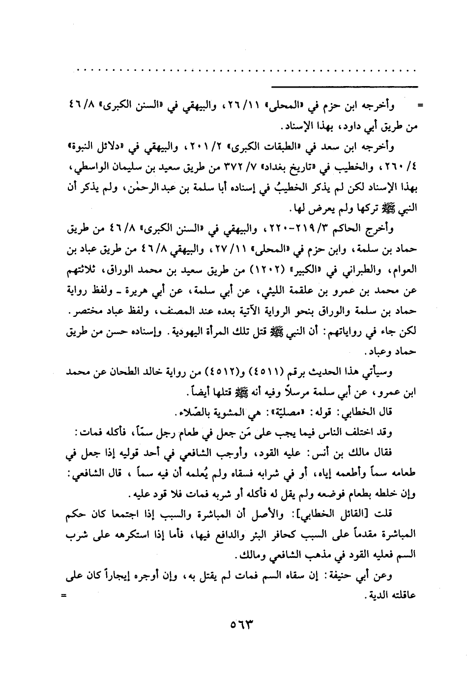 لكن جاء في رواياتهم: أن النبي - صلَّى الله عليه وسلم - قتل تلك المرأة اليهودية. وإسناده حسن من طريق حماد وعباد.