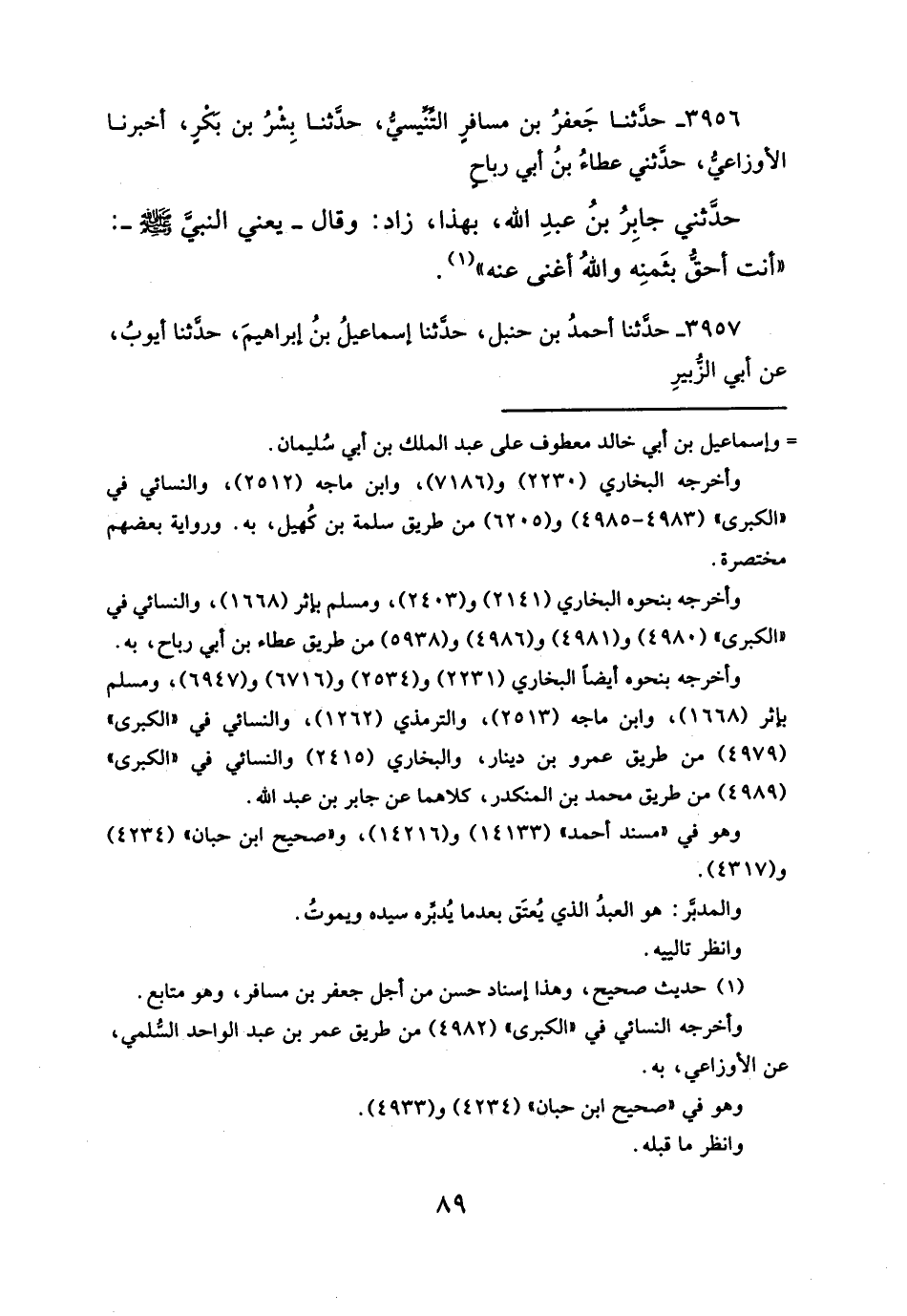 ٣٩٥٧ - حدَّثنا أحمدُ بن حنبل، حدَّثنا إسماعيلُ بنُ إبراهيمَ، حدَّثنا أيوبُ، عن أبي الزُّبيرِ