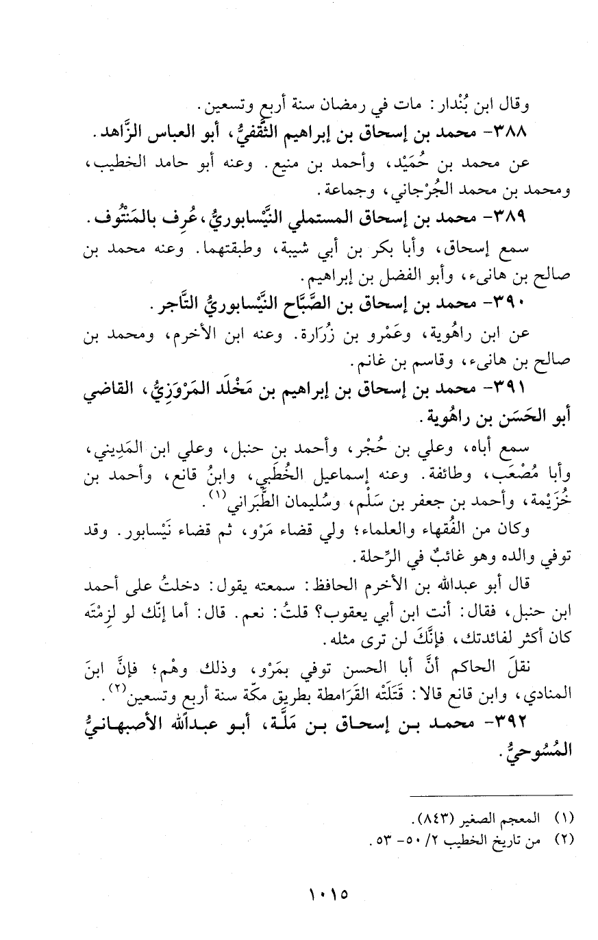 391 - محمد بن إسحاق بن إبراهيم بن مَخْلَد المَرْوَزِيّ. القاضي أبو الحَسَن بن راهوَيْه. [الوفاة: 291 - 300 ه]