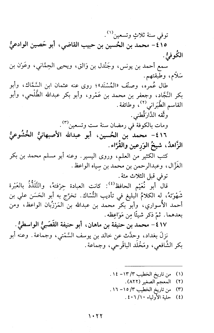 415 - محمد بن الحسين بن حبيب القاضي. أبو حُصَيْن الوادعيّ الكُوفيُّ. [الوفاة: 291 - 300 ه]