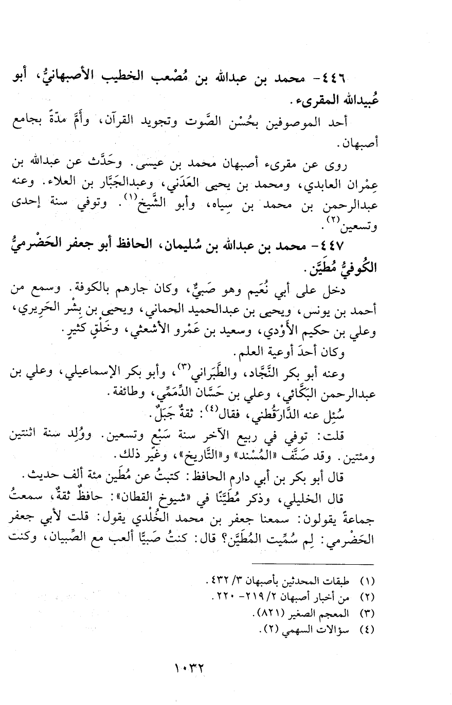446 - محمد بن عبد الله بن مصعب الخطيب الأصبهاني. أبو عبيد الله المقرئ. [الوفاة: 291 - 300 ه]