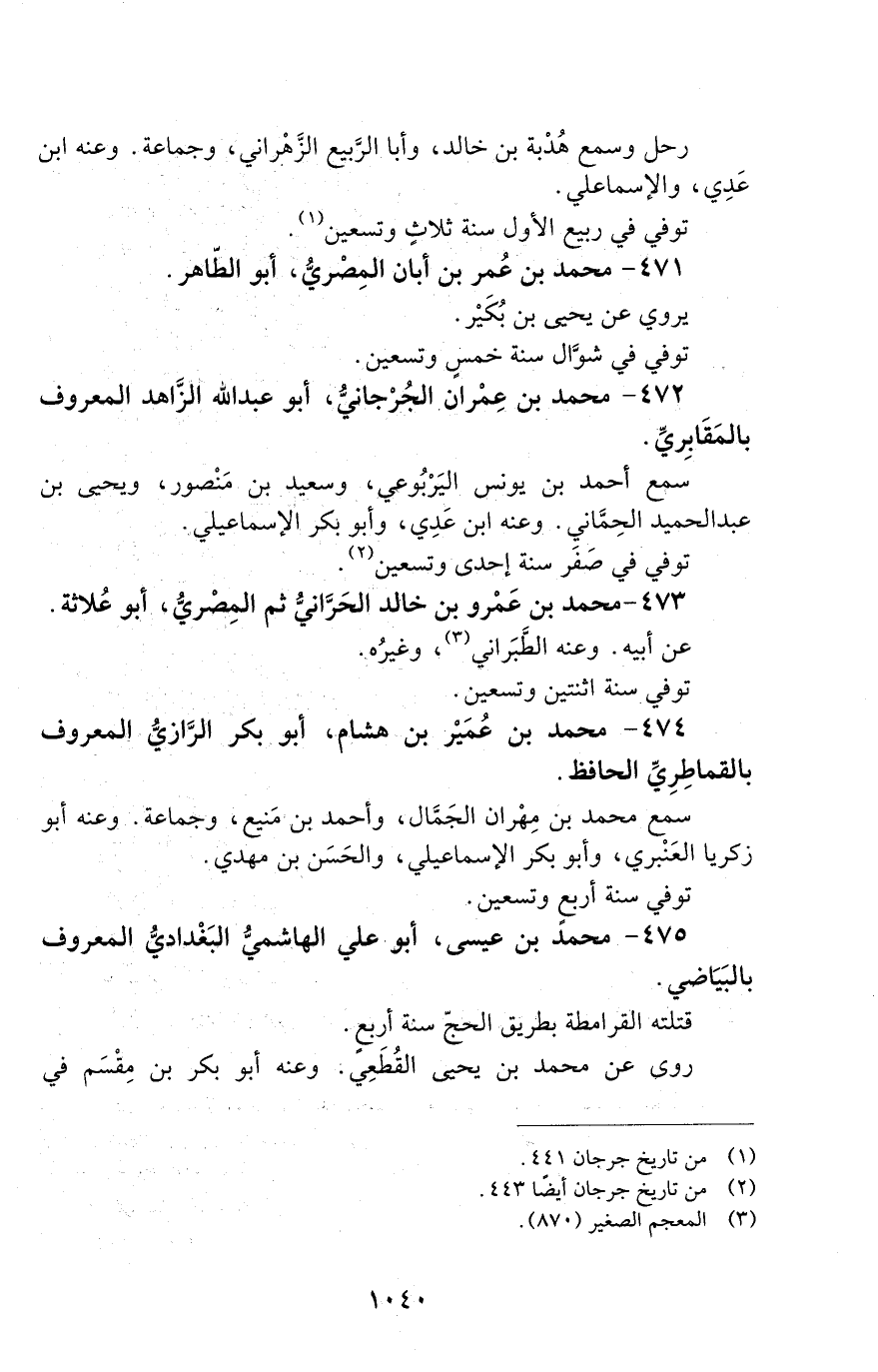 474 - محمد بن عُمَيْر بن هشام. أبو بكر الرّازيّ المعروف بالقَمَاطِريّ الحافظ. [الوفاة: 291 - 300 ه]