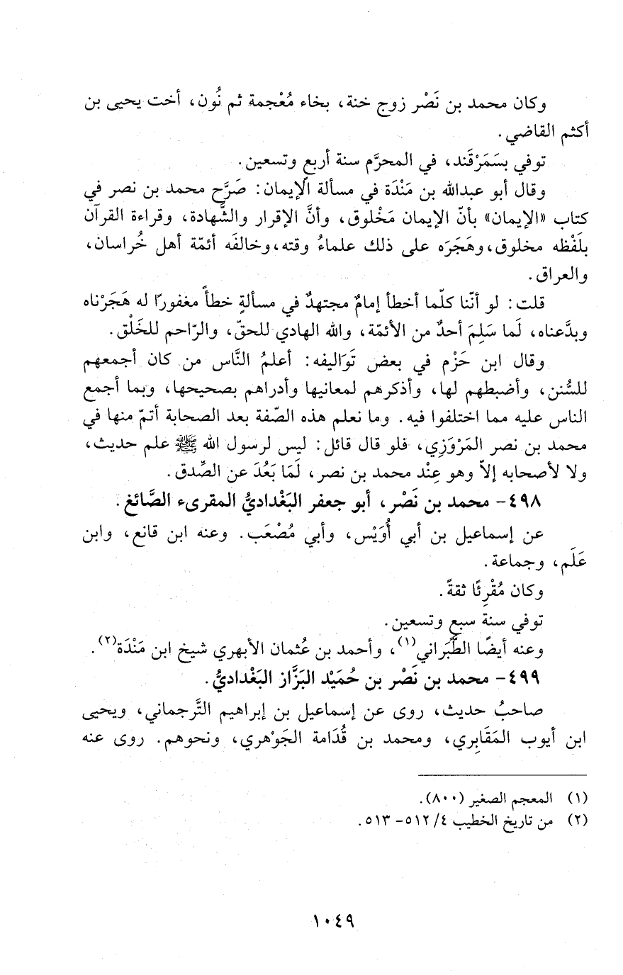 498 - محمد بن نصر. أبو جعفر البَغْداديُّ المقرئ الصَّائغ. [الوفاة: 291 - 300 ه]