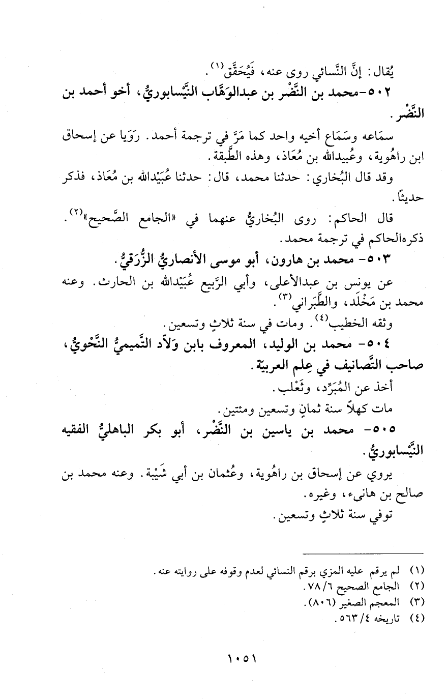 502 - محمد بن النَّضْر بن عبد الوهّاب النَّيْسَابوريُّ. [الوفاة: 291 - 300 ه]