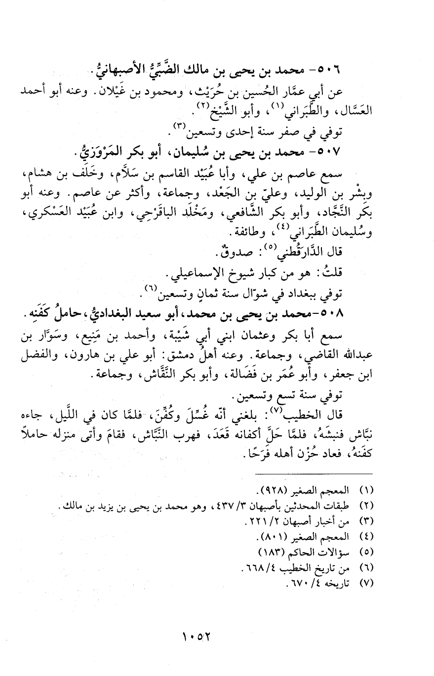 506 - محمد بن يحيى بن مالك الضَّبِّيُّ الأصبهانيُّ. [الوفاة: 291 - 300 ه]