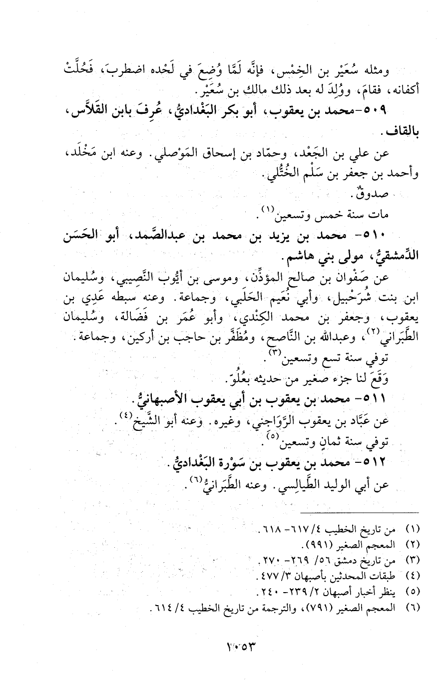 509 - محمد بن يعقوب، أبو بكر البَغْداديُّ. عُرِفَ بابن القلّاس، بالقاف. [الوفاة: 291 - 300 ه]