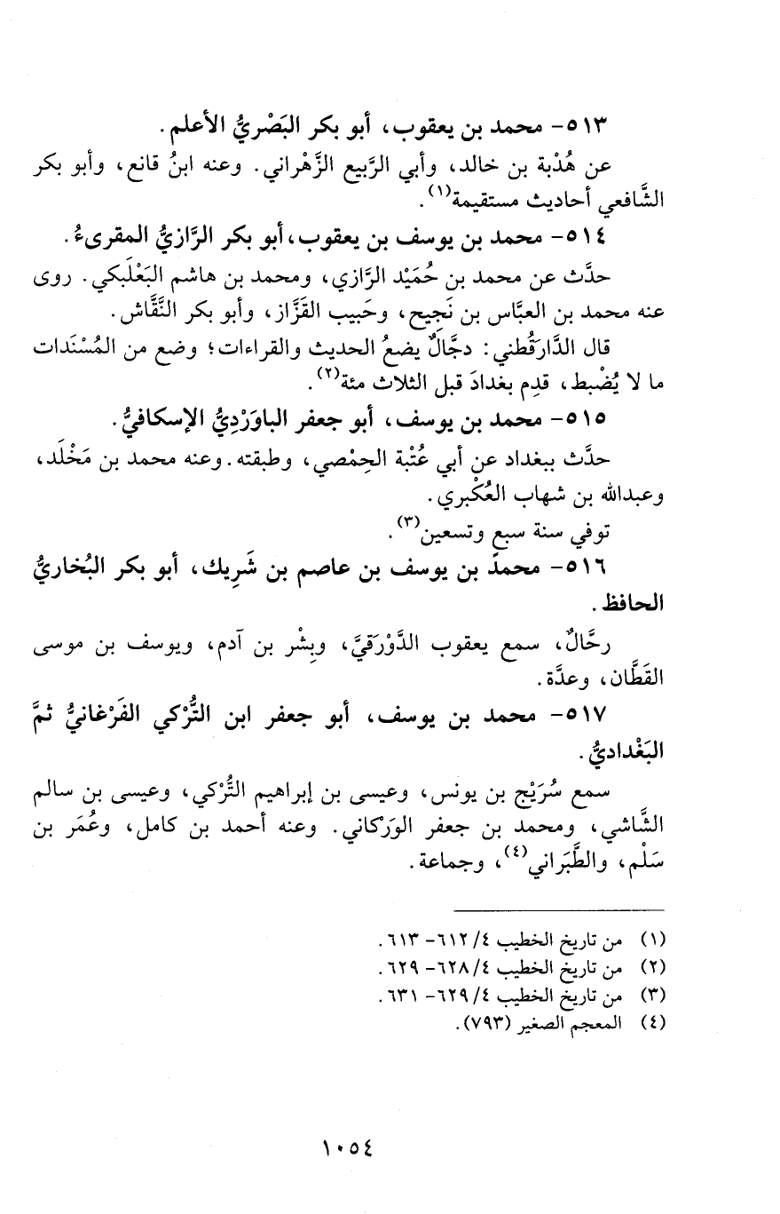 516 - محمد بن يوسف بن عاصم بن شَرِيك. أبو بكر البخاريّ الحافظ. [الوفاة: 291 - 300 ه]