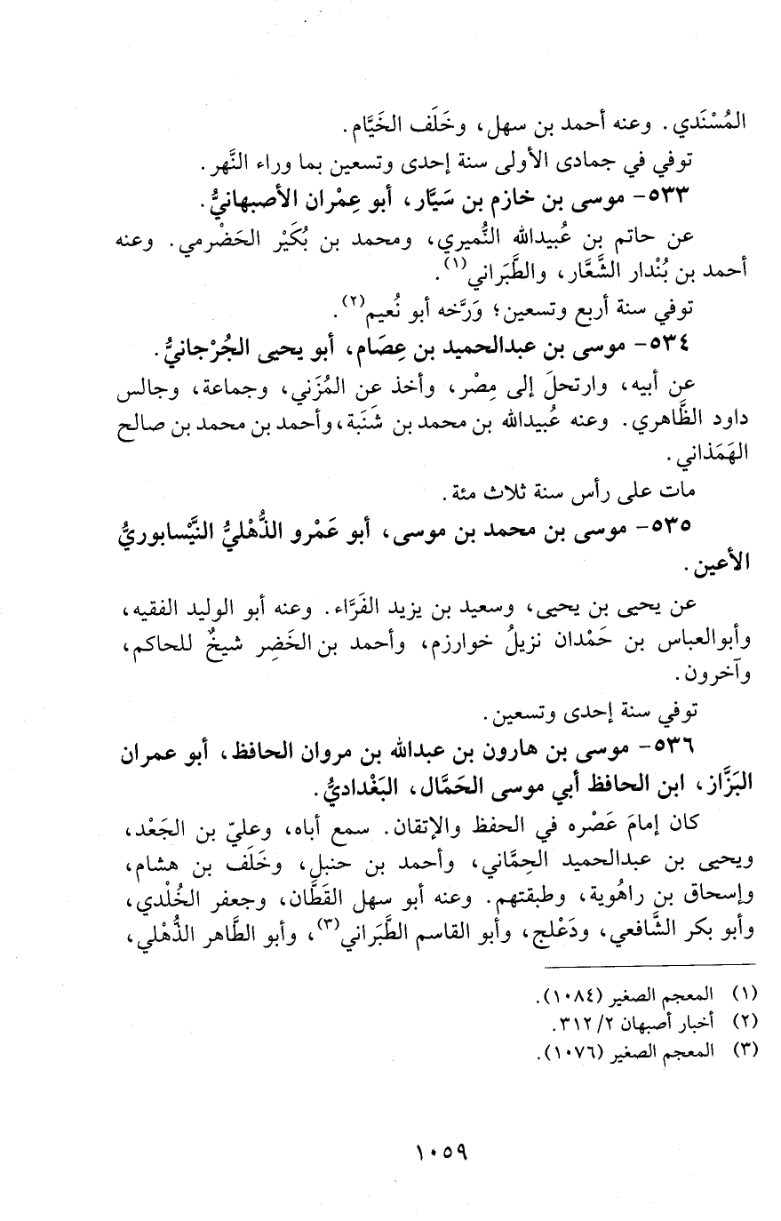533 - موسى بن خازم بن سيّار. أبو عِمران الأصبهاني. [الوفاة: 291 - 300 ه]