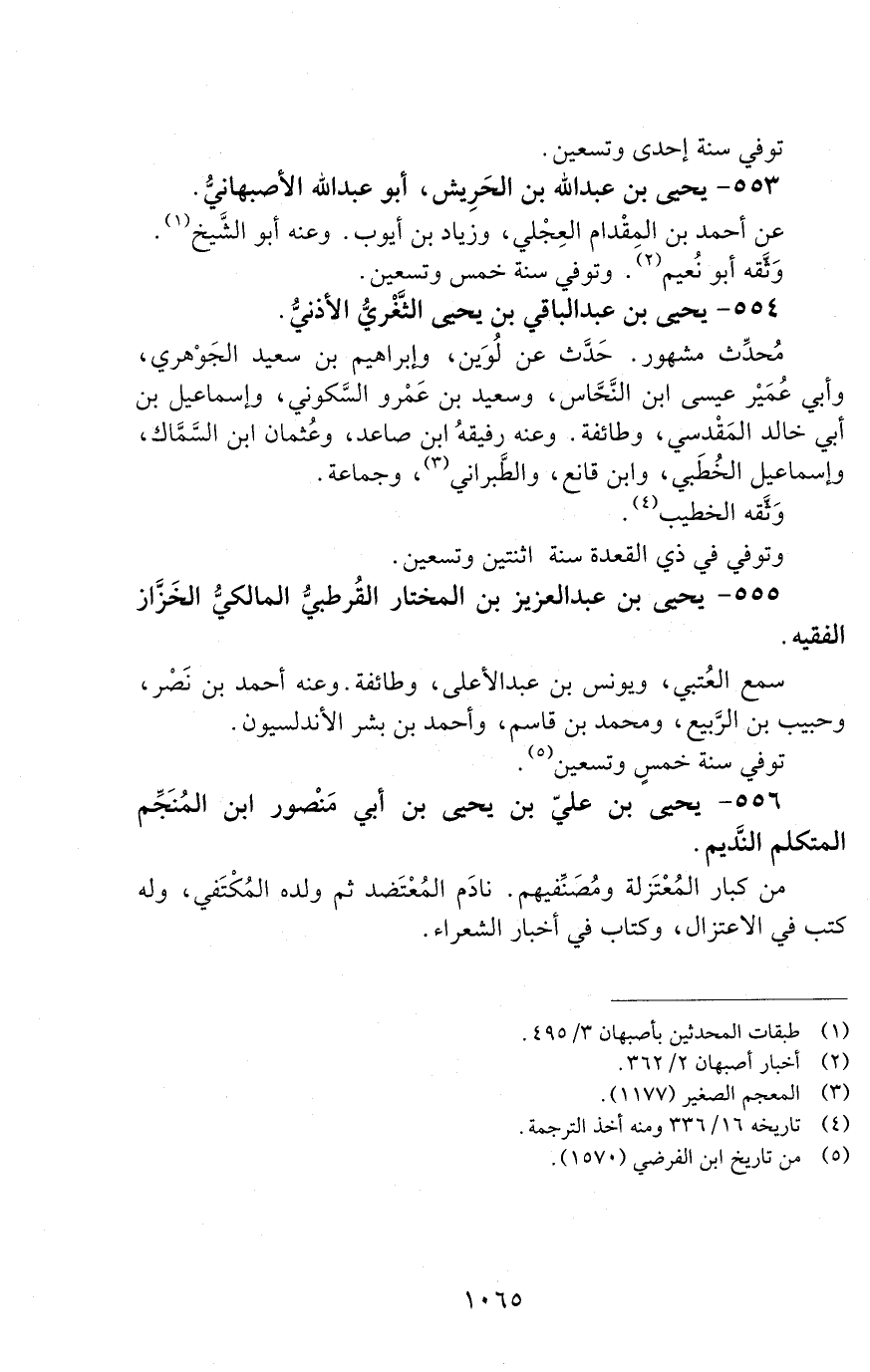553 - يحيى بن عبد الله بن الحُرَيش، أبو عبد الله الأصبهاني. [الوفاة: 291 - 300 ه]