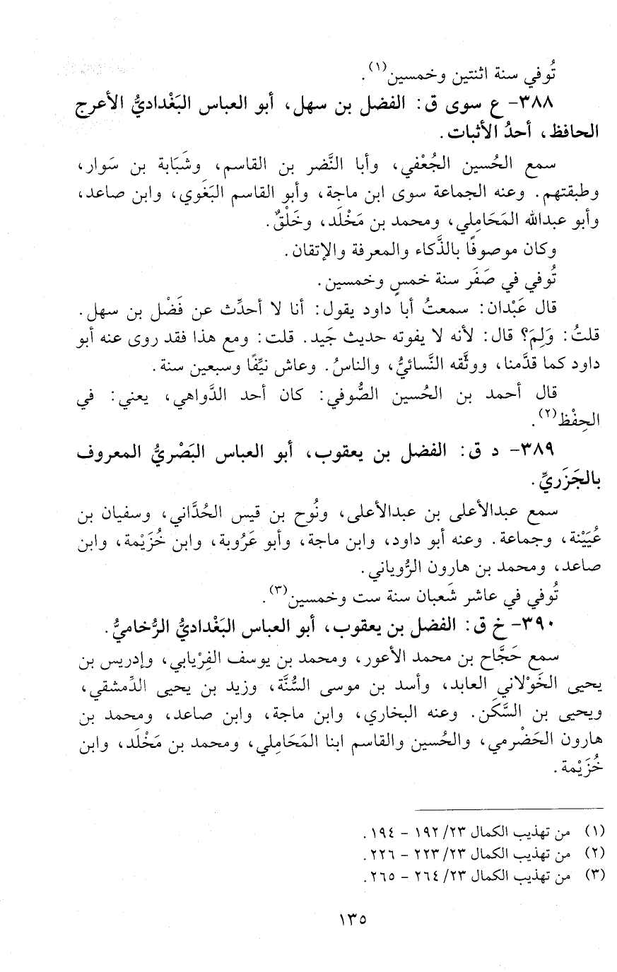 388 - ع سوى ق: الفضل بن سهل، أبو العباس البَغْداديُّ الأعرج الحافظ، [الوفاة: 251 - 260 ه]