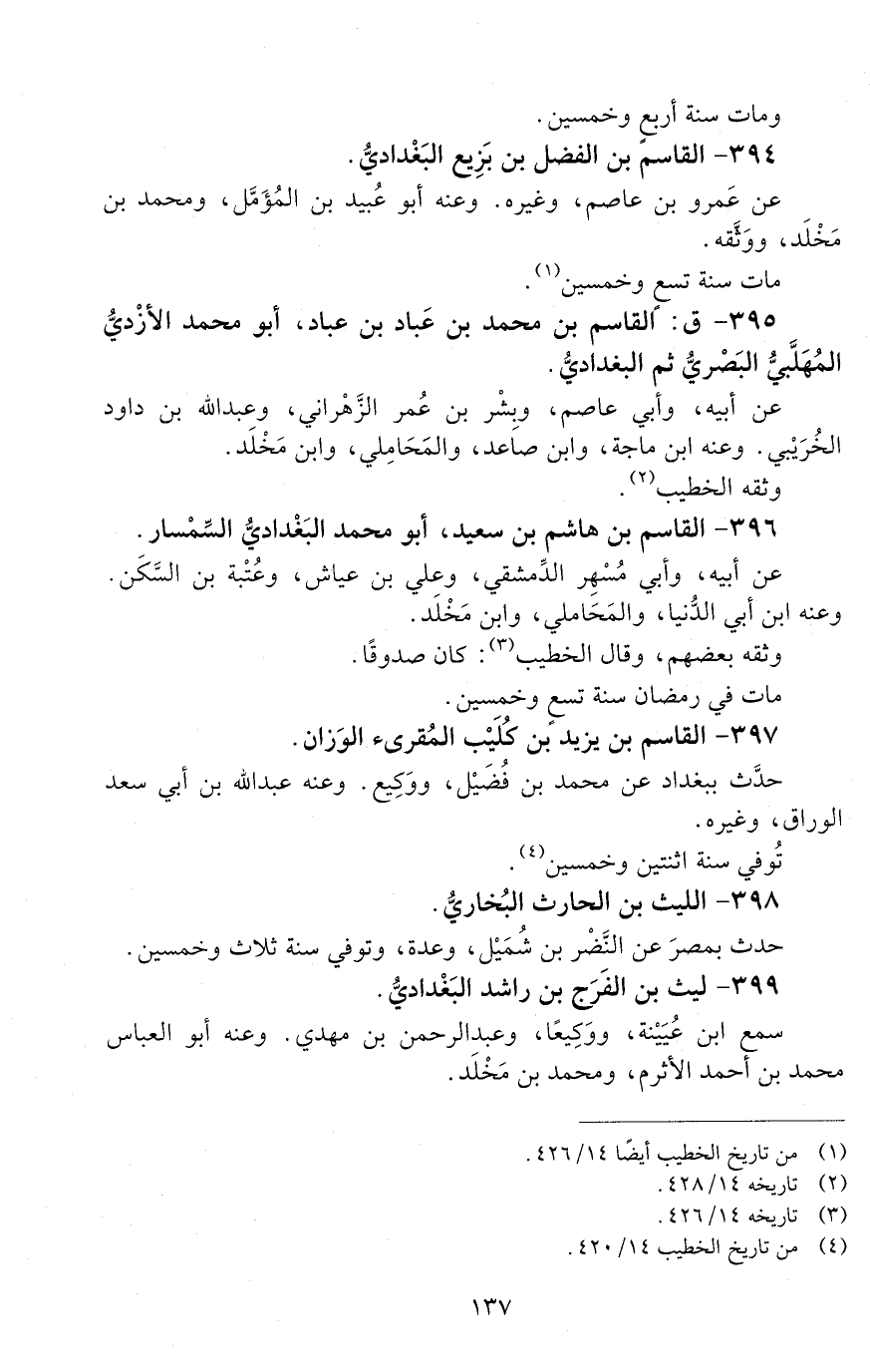 395 - ق: القاسم بْن محمد بْن عبّاد بْن عبّاد أَبُو محمد الْأَزْدِيّ المهلّبيّ البَصْريُّ، ثمّ البَغْداديُّ. [الوفاة: 251 - 260 ه]