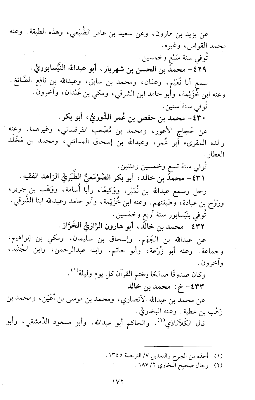 429 - محمد بْن الْحَسَن بْن شَهْرَيار، أبو عبد الله النَّيسابوريُّ. [الوفاة: 251 - 260 ه]