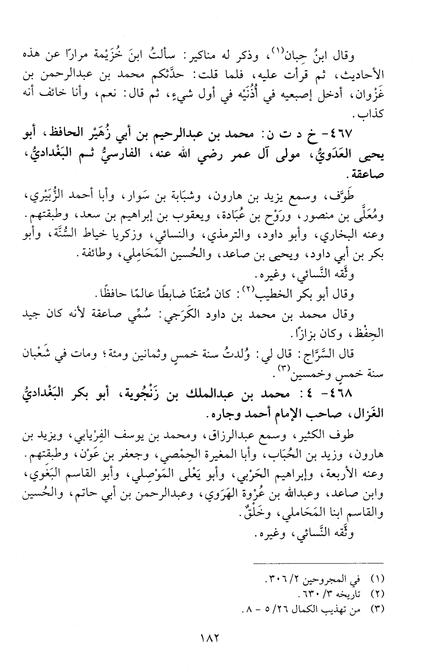 468 - 4: محمد بْن عَبْد الملك بْن زَنْجَوَيْه أَبُو بَكْر البَغْداديُّ الغَزال. [الوفاة: 251 - 260 ه]