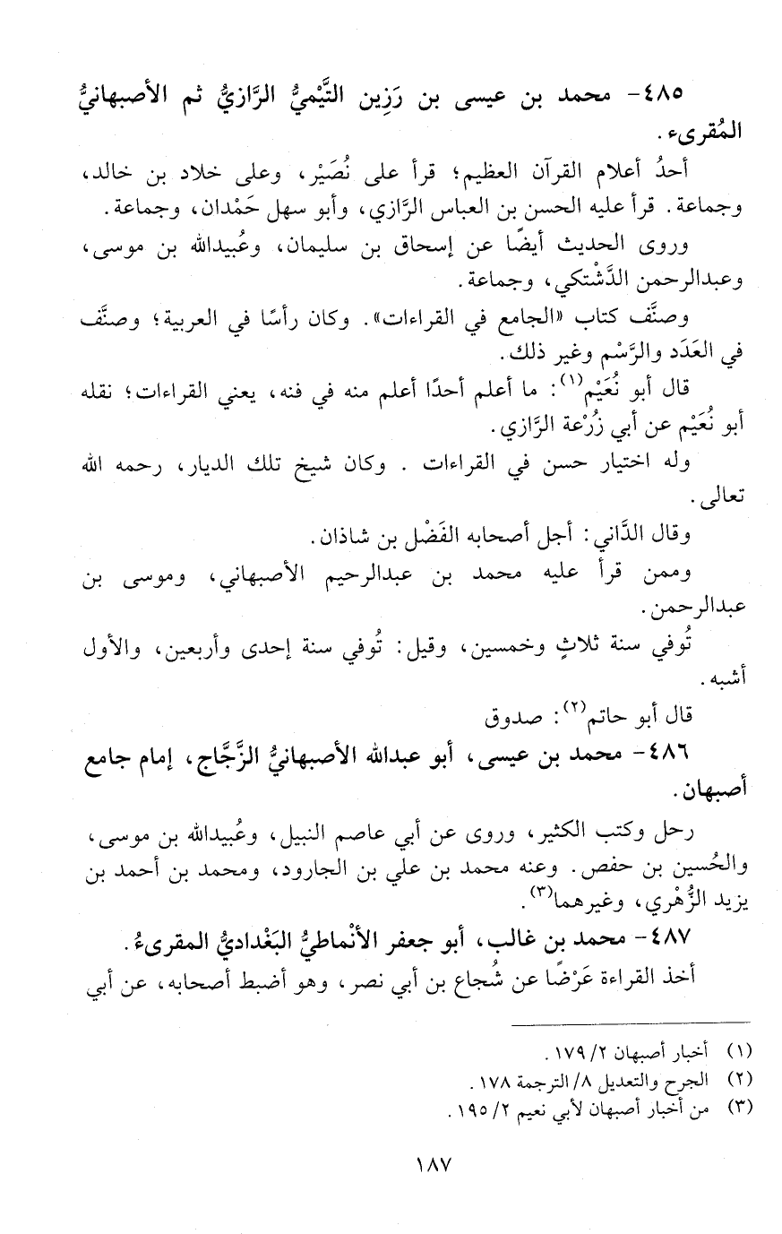 486 - محمد بْن عيسى، أبو عبد الله الأصبهاني الزّجّاج، [الوفاة: 251 - 260 ه]