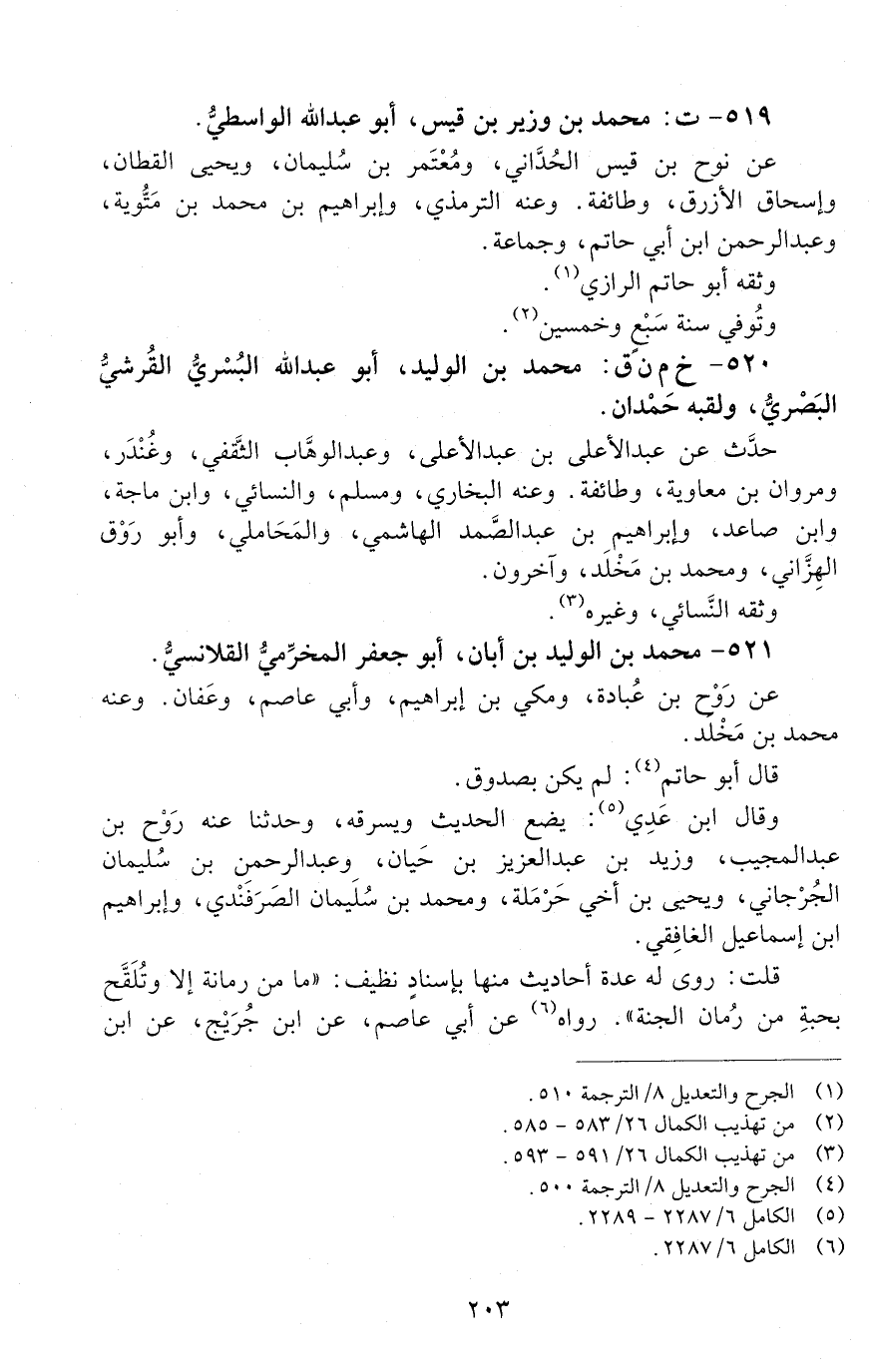 519 - ت: محمد بن وزير بن قيس أبو عبد الله الواسطي. [الوفاة: 251 - 260 ه]