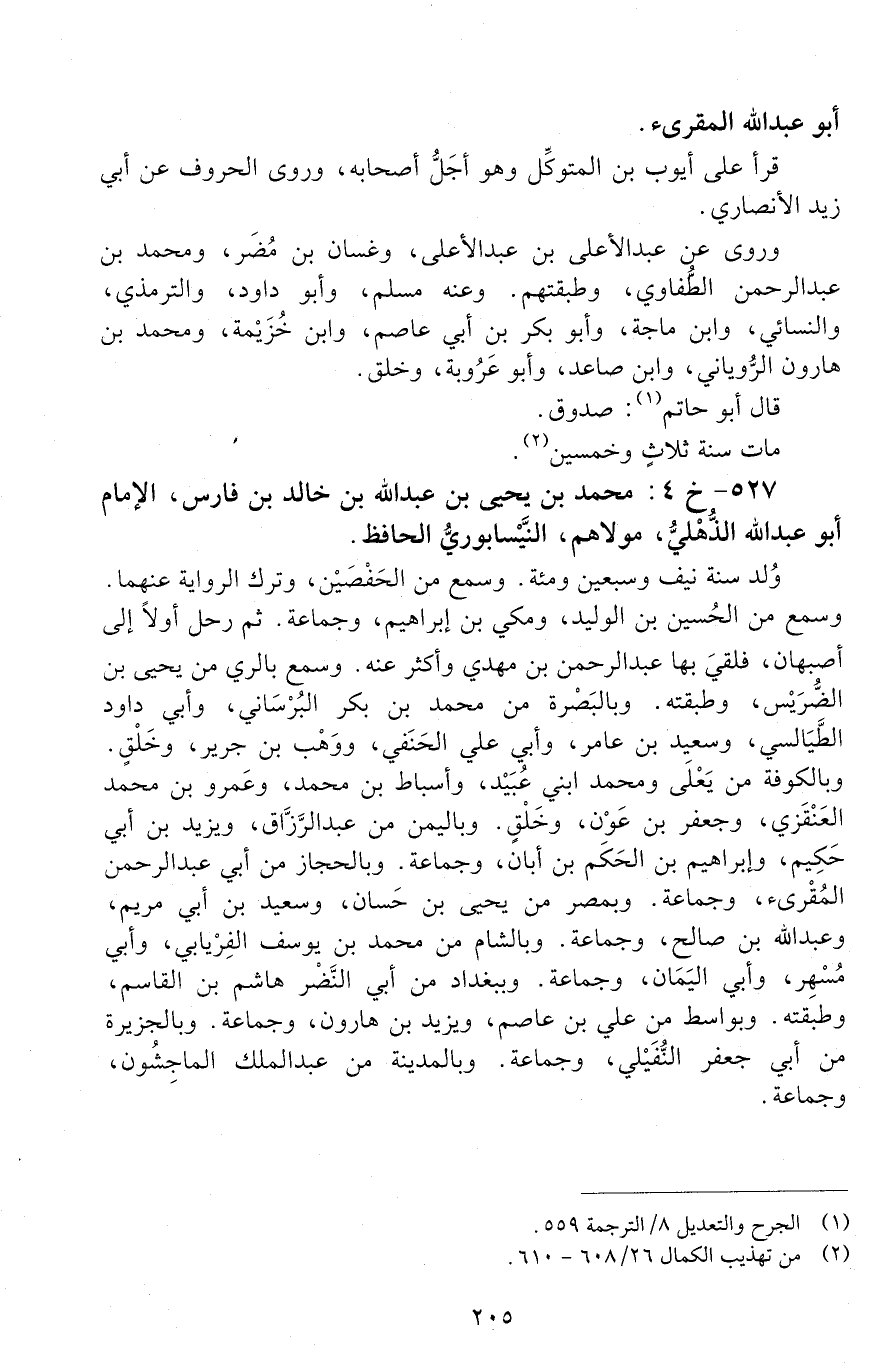 527 - خ 4: محمد بن يحيى بن عبد الله بن خَالِد بْن فارس، الْإمَام أبو عبد الله الذهلي، مولَاهُمُ النَّيسابوري الحافظ. [الوفاة: 251 - 260 ه]