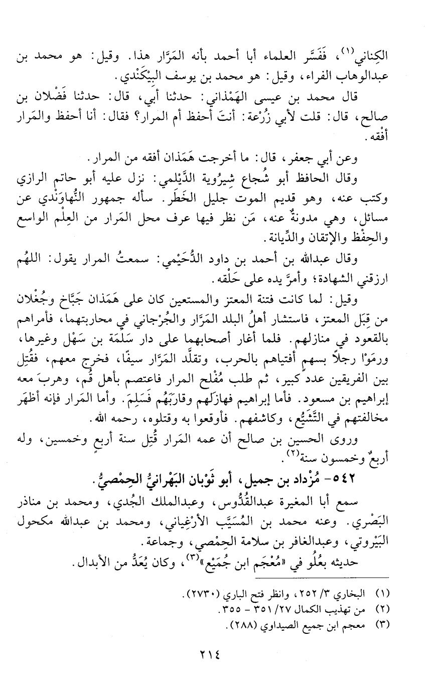 542 - مُزْداد بْن جميل، أَبُو ثَوْبان البَهْرانيّ الحمصيّ. [الوفاة: 251 - 260 ه]