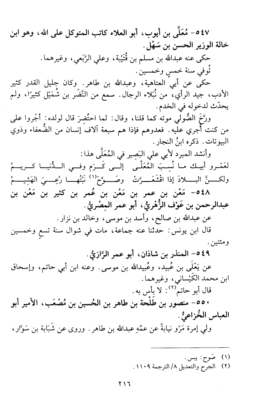 550 - منصور بْن طَلْحة بْن طاهر بن الحسين بن مُصْعَب، الأمير أبو الْعَبَّاس الخُزاعيّ. [الوفاة: 251 - 260 ه]