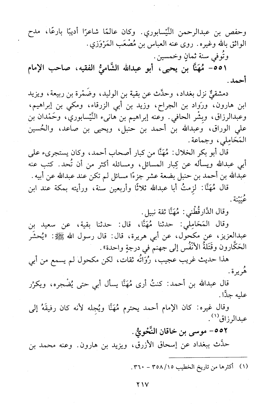 551 - مُهَنّأ بْن يحيى، أبو عبد الله الشّاميّ الفقيه، [الوفاة: 251 - 260 ه]