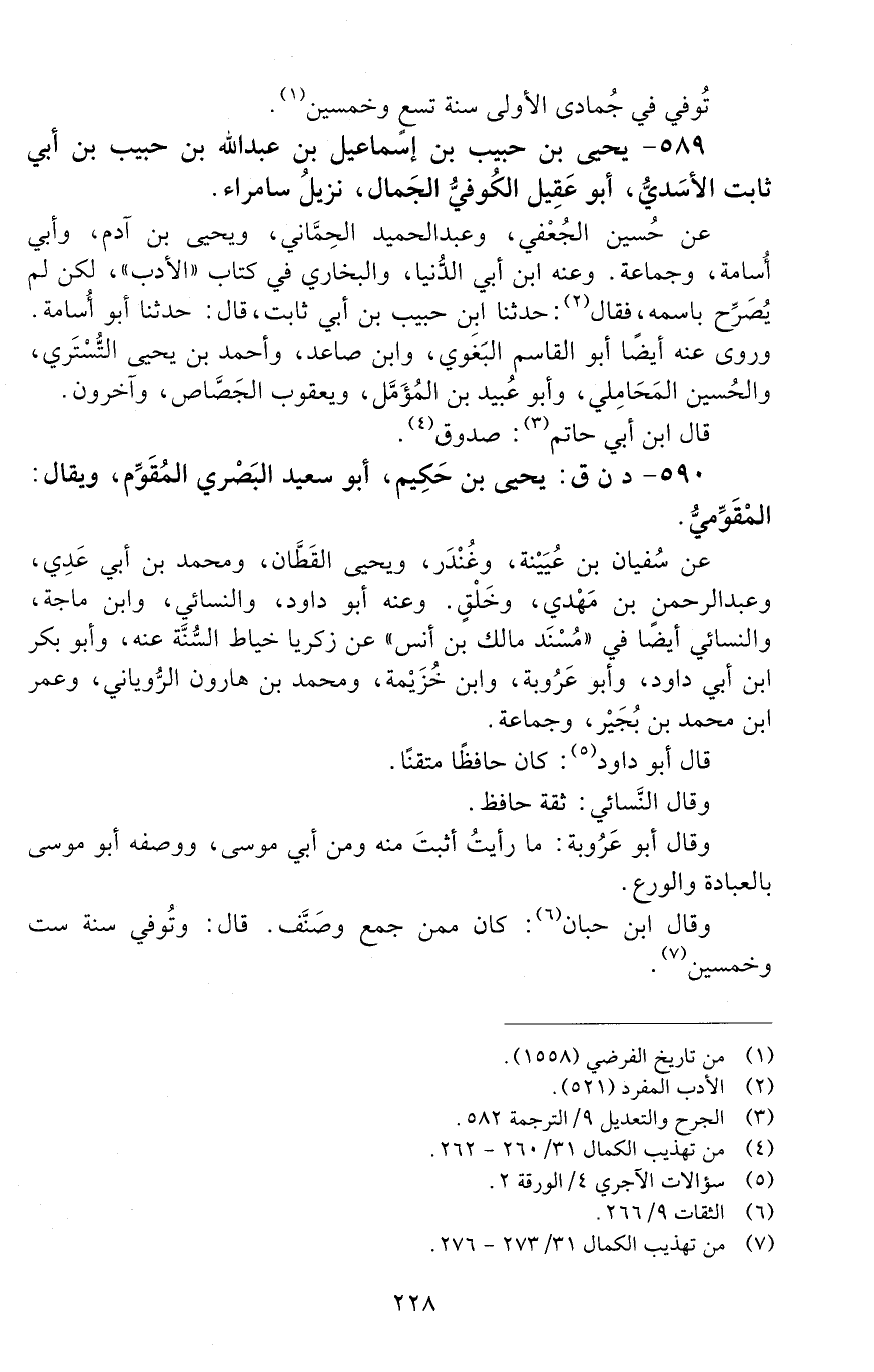 589 - يحيى بْن حبيب بْن إِسْمَاعِيل بْن عَبْدُ اللَّهِ بْنُ حَبِيبِ بْنِ أَبِي ثَابِتٍ الأَسَدِيّ، أَبُو عُقَيْل الكُوفيُّ الجمّال، [الوفاة: 251 - 260 ه]