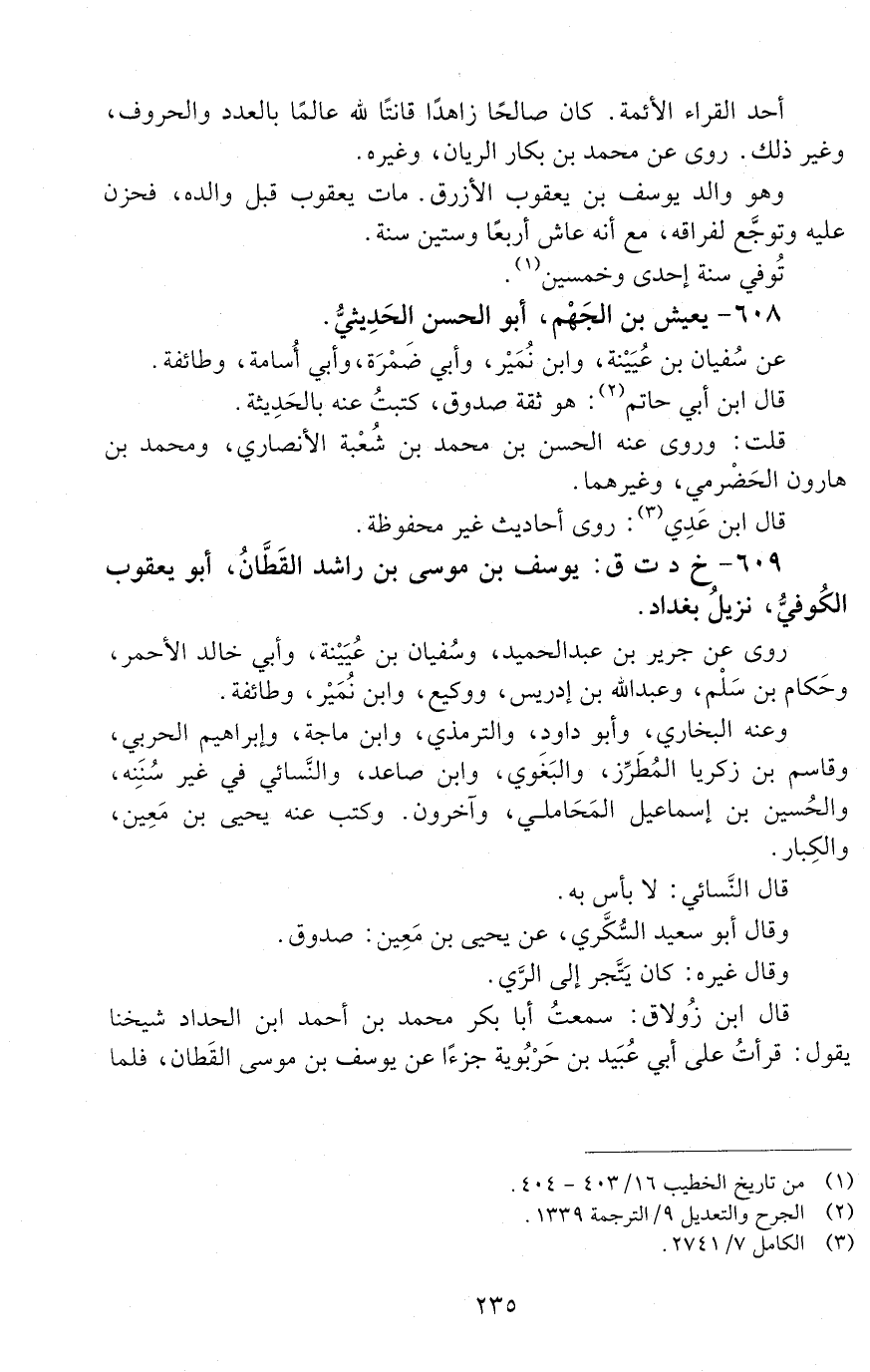608 - يعيش بن الجَهْم، أبو الحسن الحَدِيثيُّ. [الوفاة: 251 - 260 ه]