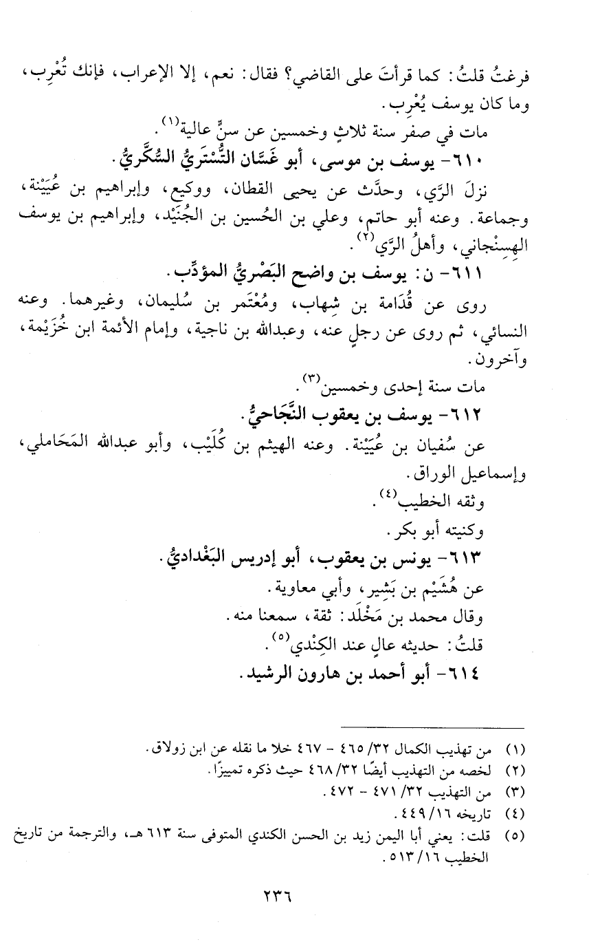 611 - ن: يوسف بن واضح البَصْريُّ المؤدِّب. [الوفاة: 251 - 260 ه]