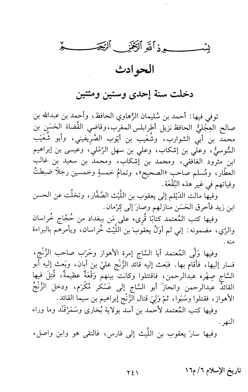 وفيها كتب المعتمد كتابًا قُرِئ على من ببغداد من حُجّاج خُراسان والرِّيّ، مضمونه: انّي لم أولِّ يعقوبَ بْن اللَّيْث خُراسان، ويأمرهم بالبراءة منه.