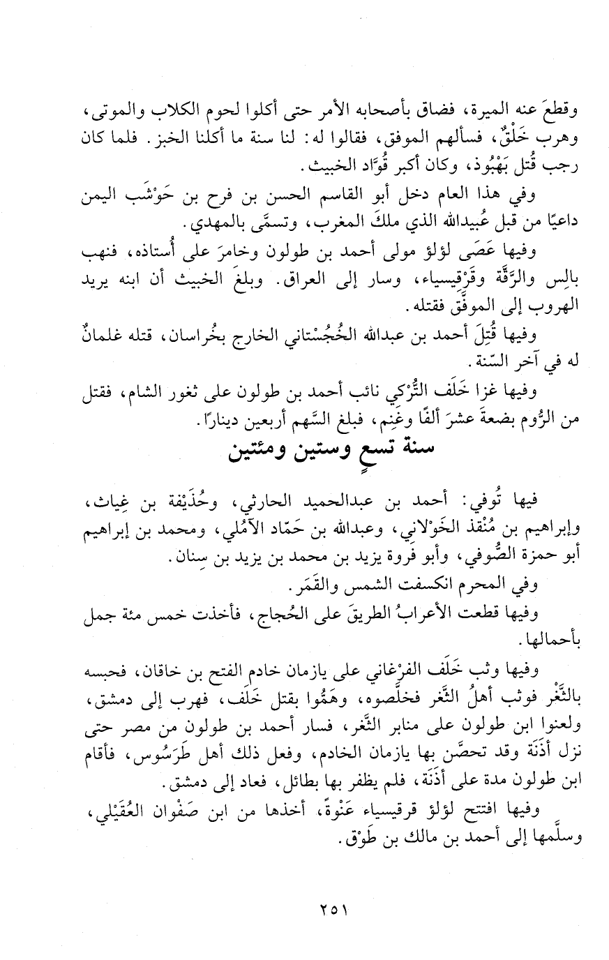 وفيها افتتح لؤلؤ قرقيسياء عنوةً، وأخذها من ابن صفوان العقيلي، وسلمها إلى أحمد بن مالك بن طوق. -[252]-