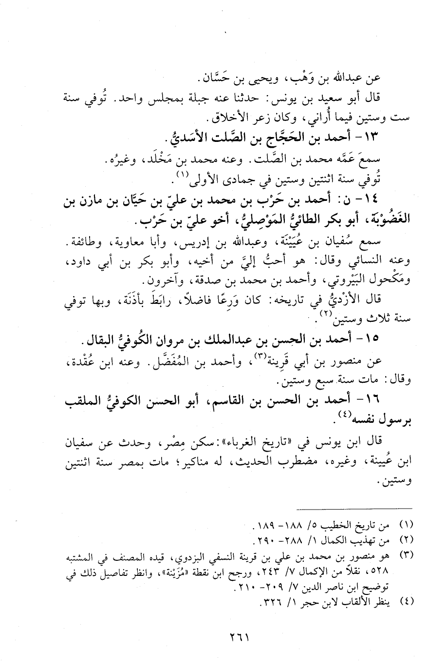 14 - ن: أَحْمَد بْن حرب بْن محمد بْن عليّ بن حيان بن مازن بن الغضوبة، أبو بكر الطائي الْمَوْصِلِيّ، [الوفاة: 261 - 270 ه]