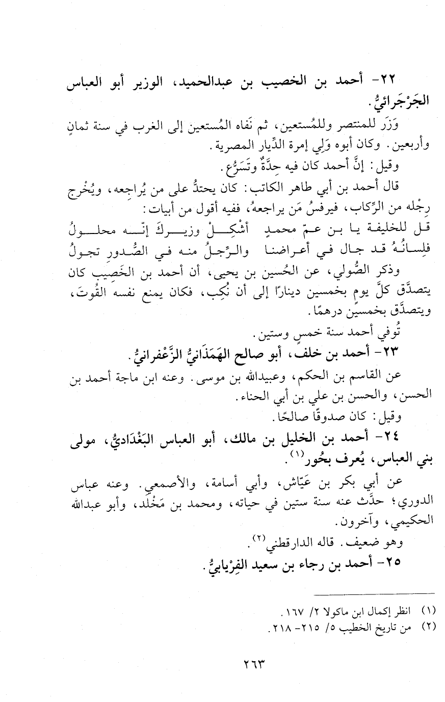 24 - أحمد بن الخليل بن مالك، أبو العباس البَغْداديُّ، مولى بني العباس، يعرف بحُور. [الوفاة: 261 - 270 ه]