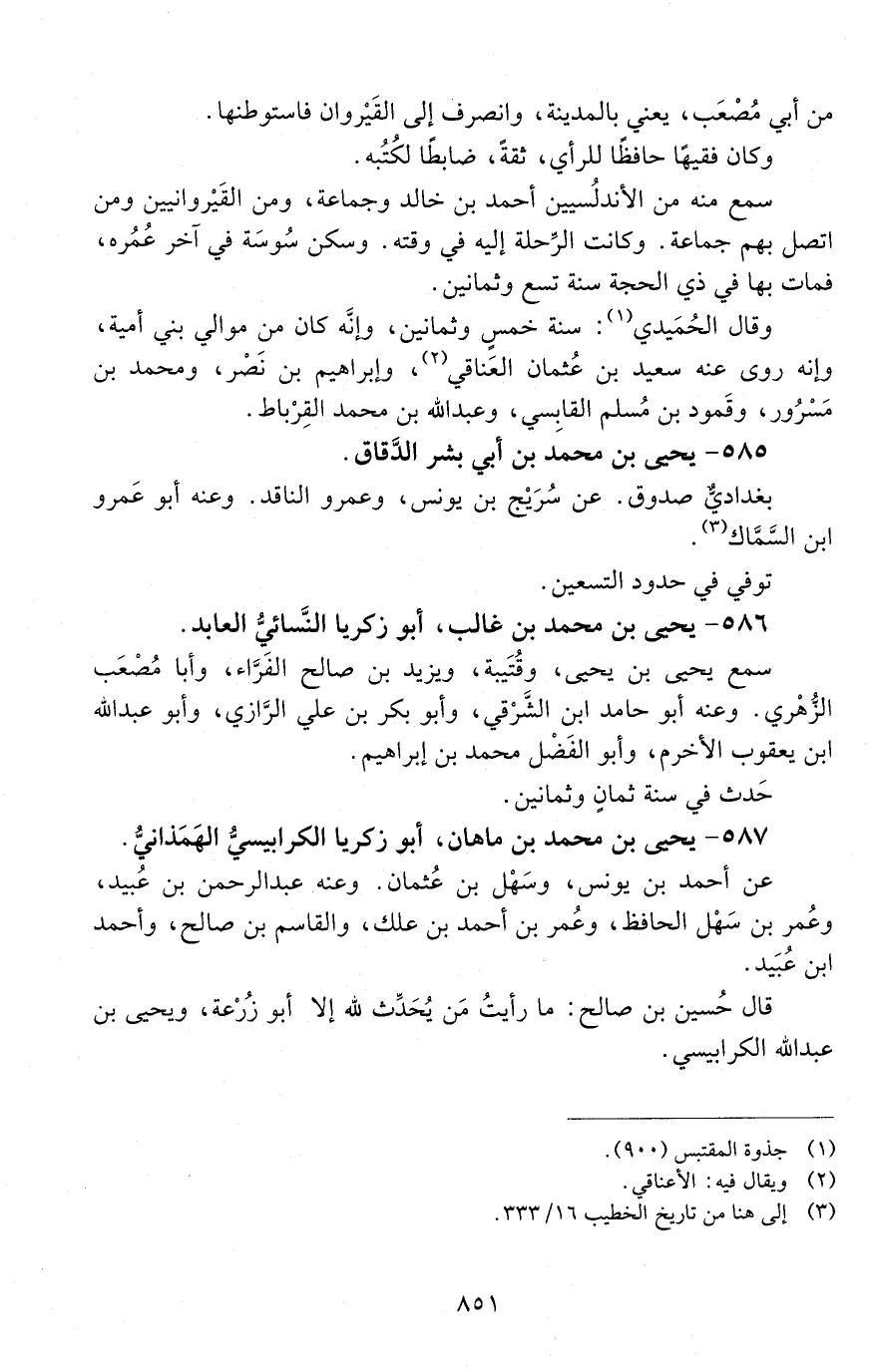 587 - يَحْيَى بن محمد بن ماهان، أَبُو زكريا الكرابيسي الهمذاني. [الوفاة: 281 - 290 ه]