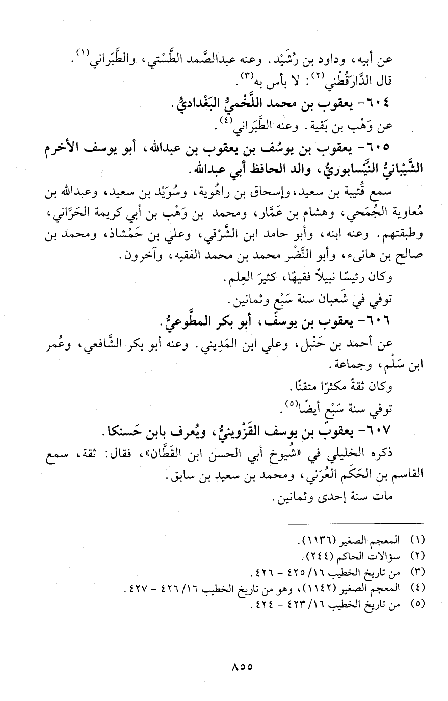 605 - يَعْقُوب بن يوسف بن يعقوب بن عبد الله. أَبُو يوسف الأخرم الشَّيْبَانِيّ النَّيْسَابُوري. [الوفاة: 281 - 290 ه]