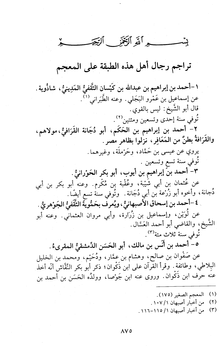 -تَرَاجِمُ رِجَالِ أَهْلِ هَذِهِ الطَّبَقَةِ عَلَى الْمُعْجَمِ