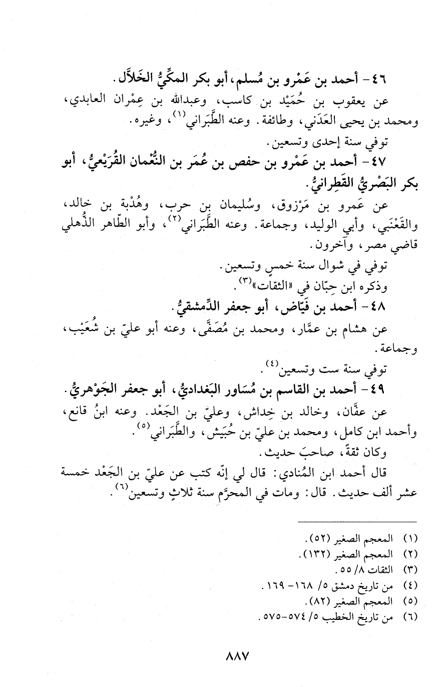 47 - أحمد بن عَمْرو بن حفص بن عُمَر بن النعمان القريعي، أبو بكر البَصْريُّ القَطَرانيّ. [الوفاة: 291 - 300 ه]