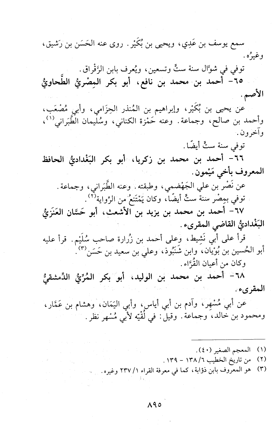 65 - أحمد بن محمد بن نافع. أبو بكر المِصْريُّ الطَّحاويّ الأصمّ. [الوفاة: 291 - 300 ه]