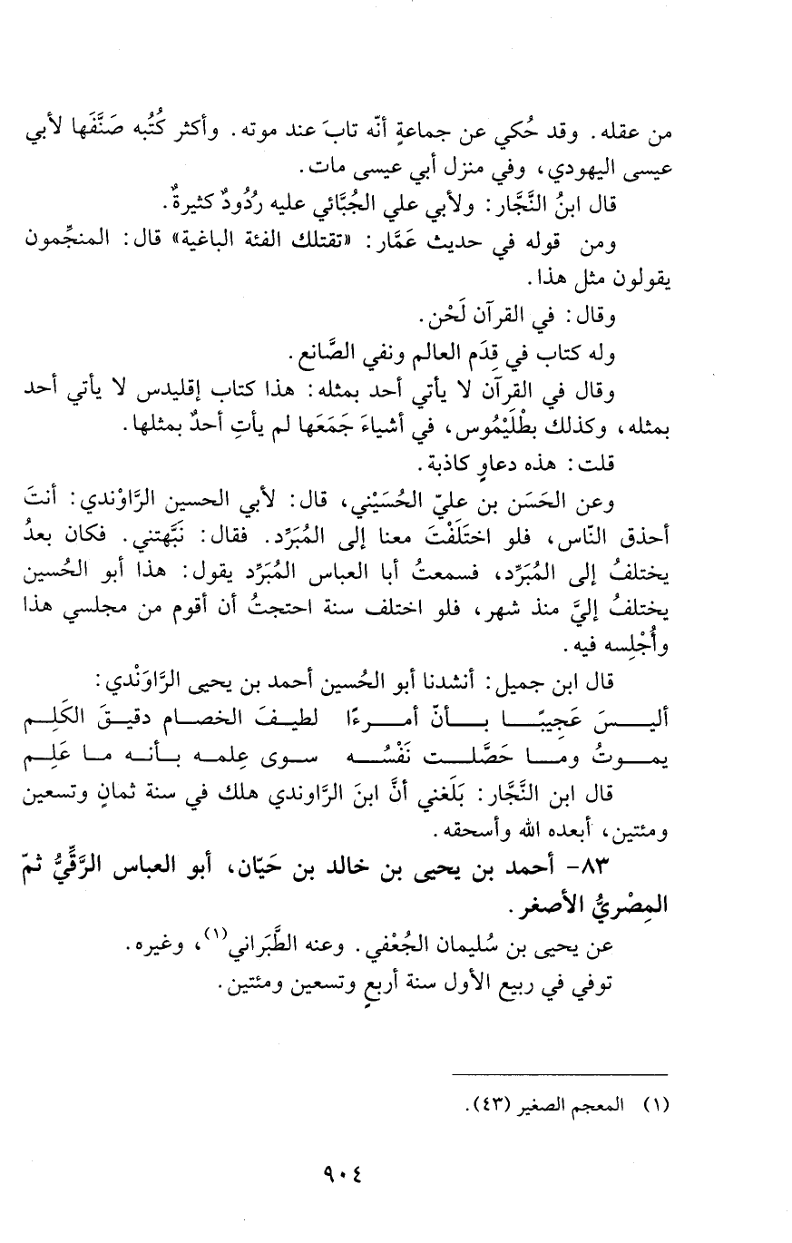 83 - أحمد بن يحيى بن خالد بن حيان، أبو العباس الرَّقَّيّ، ثمّ المِصْريُّ الأصغر. [الوفاة: 291 - 300 ه]