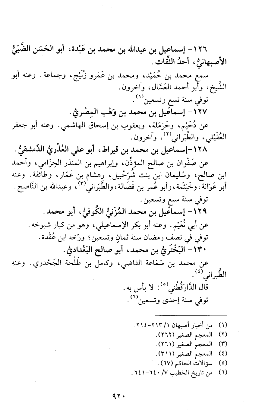 126 - إسماعيل بن عبد الله بن محمد بن عَبْدة. أبو الحَسَن الضَّبِّيُّ الأصبهانيّ، [الوفاة: 291 - 300 ه]
