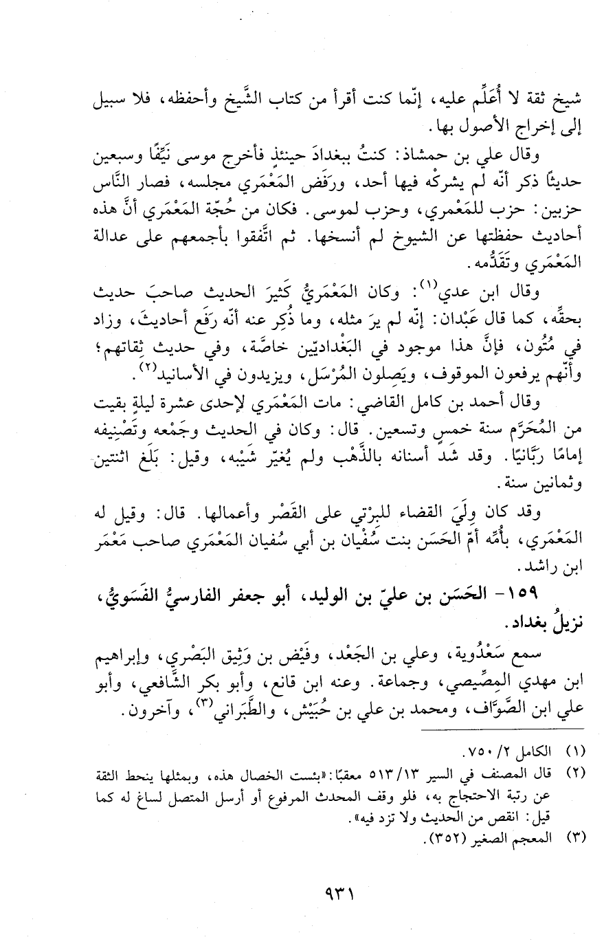 159 - الحَسَن بن عليّ بن الوليد، أبو جعفر الفارسيّ الفَسَويّ، [الوفاة: 291 - 300 ه]