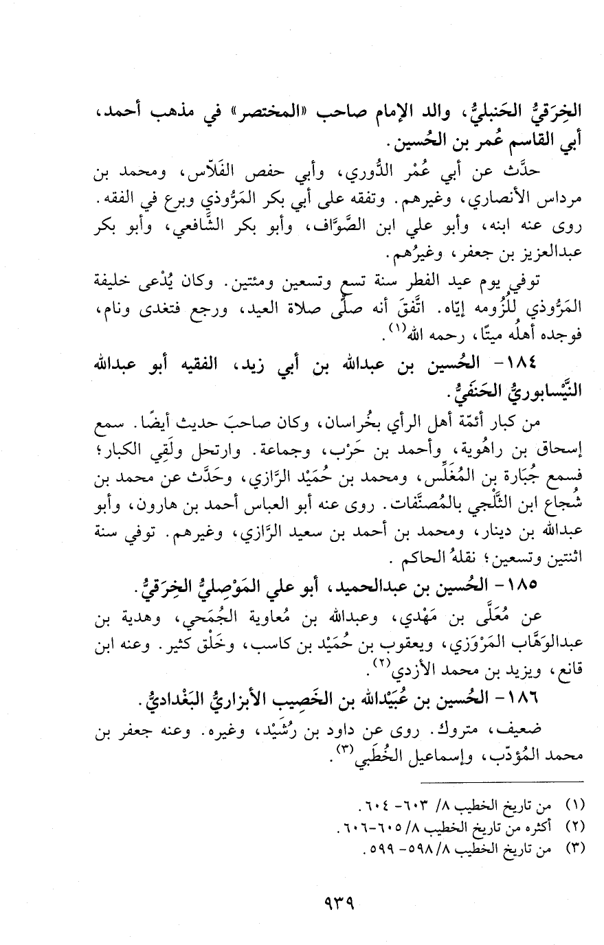 185 - الحسين بن عبد الحميد، أبو عليّ المَوْصِليّ الخرقيّ. [الوفاة: 291 - 300 ه]