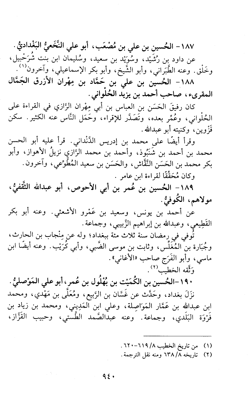 188 - الحسين بْن عليّ بْن حمّاد بْن مِهران الأزرق الجمّال المقرئ. [أبو عبد الله] [الوفاة: 291 - 300 ه]