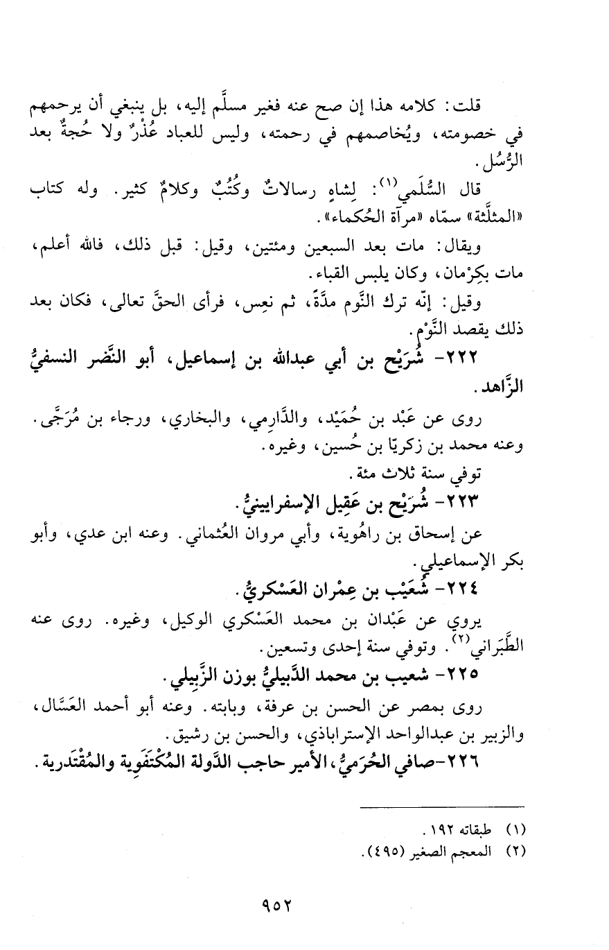 222 - شُرَيْح بن أبي عبد الله بن إسماعيل، أبو النّضر النَّسَفيّ الزّاهد. [الوفاة: 291 - 300 ه]