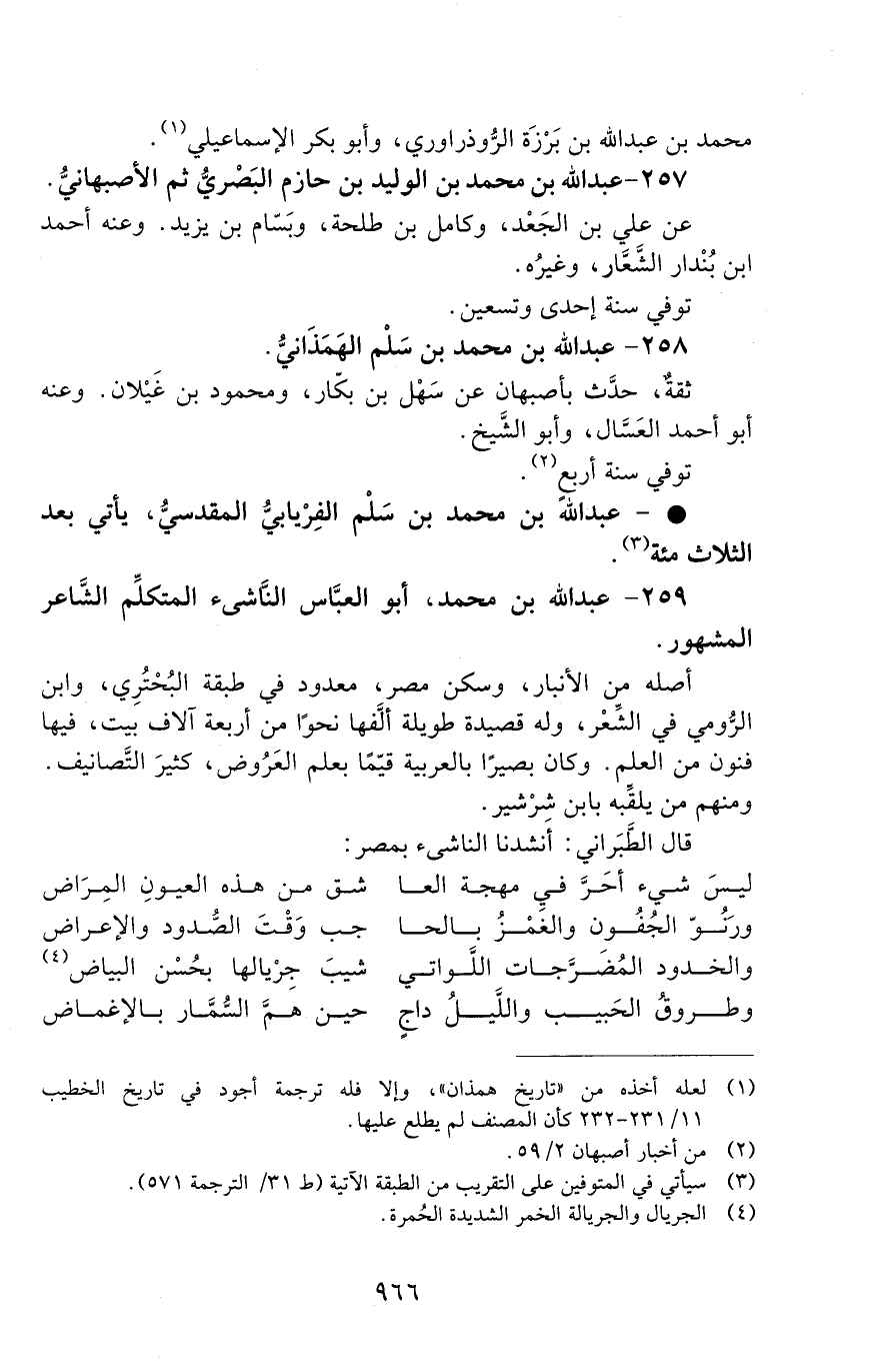 259 - عبد الله بن محمد. أبو العبّاس النّاشئ المتكلّم الشّاعر المشهور. [الوفاة: 291 - 300 ه]