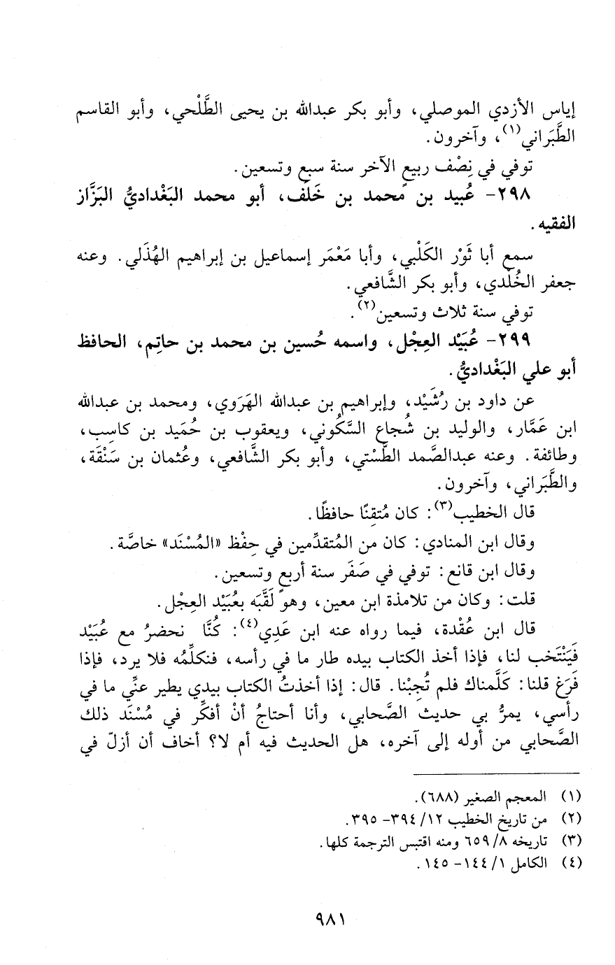 299 - عُبَيْد العِجْل. واسمه حسين بن محمد بن حاتم الحافظ أبو عليّ البَغْداديُّ. [الوفاة: 291 - 300 ه]
