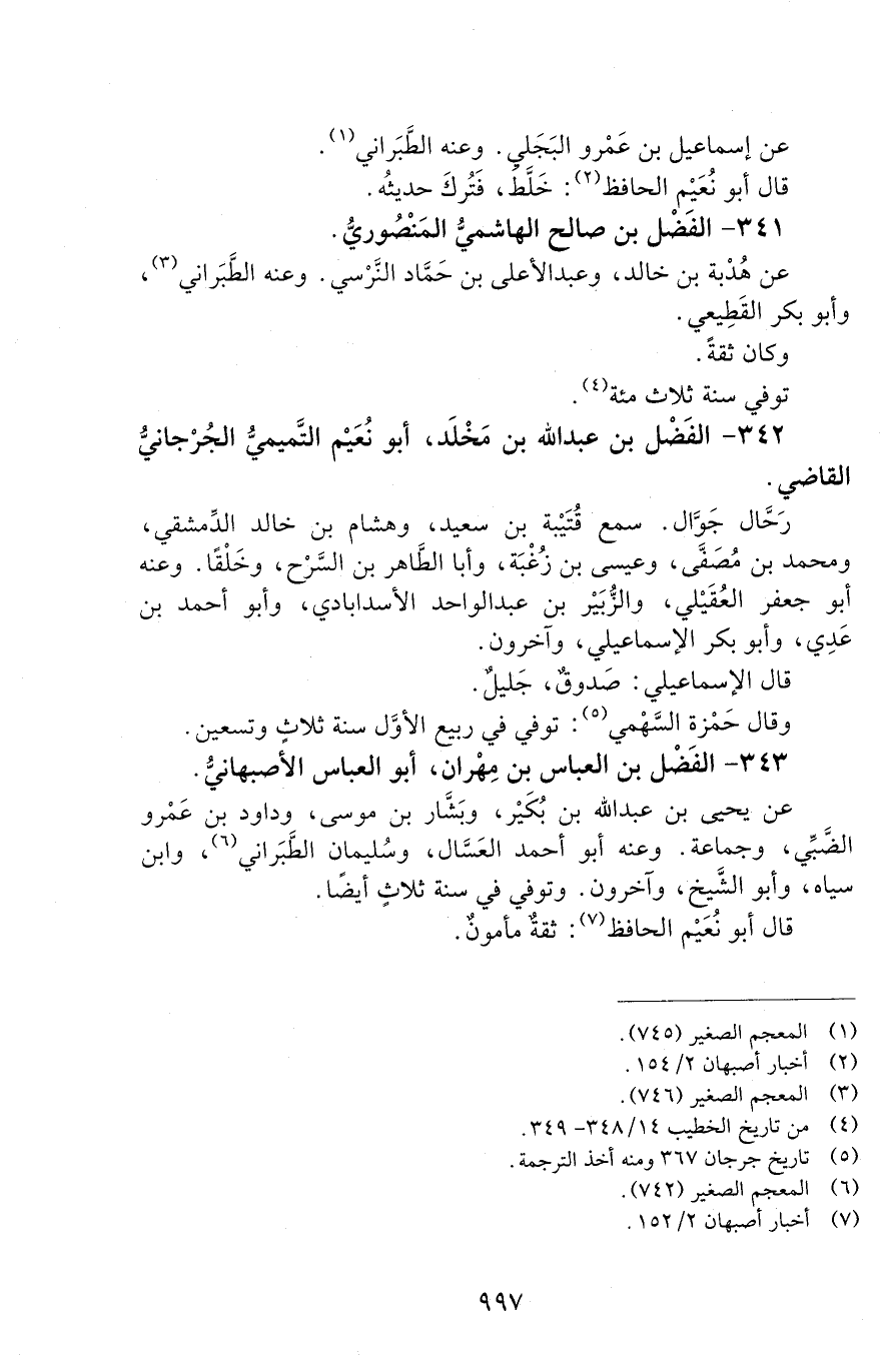 342 - الفضل بن عبد الله بن مَخْلَد. أبو نُعَيْم التَّميميّ الْجُرْجانيّ القاضي. [الوفاة: 291 - 300 ه]