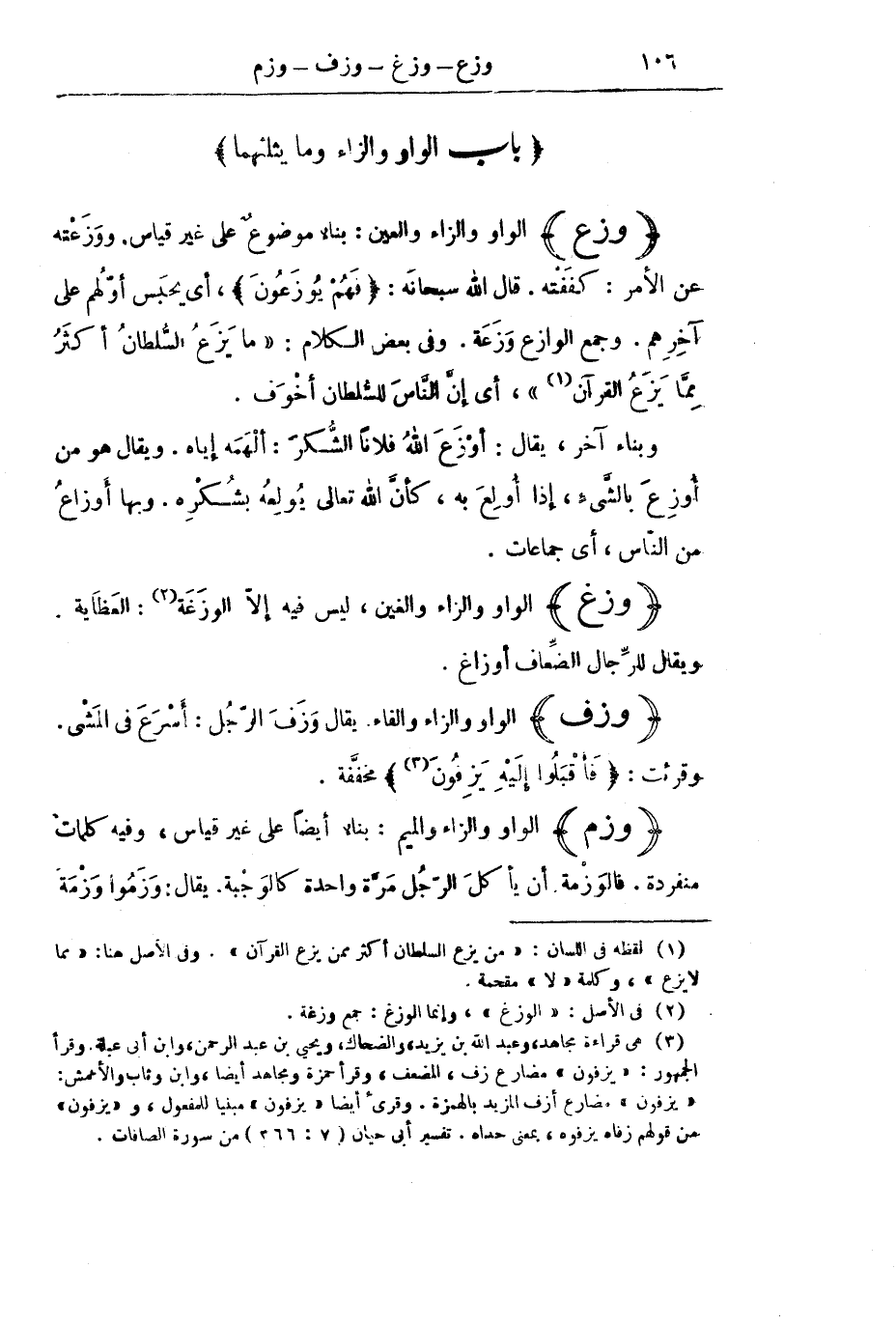 [بَابُ الْوَاوِ وَالزَّاءِ وَمَا يَثْلِثُهُمَا]