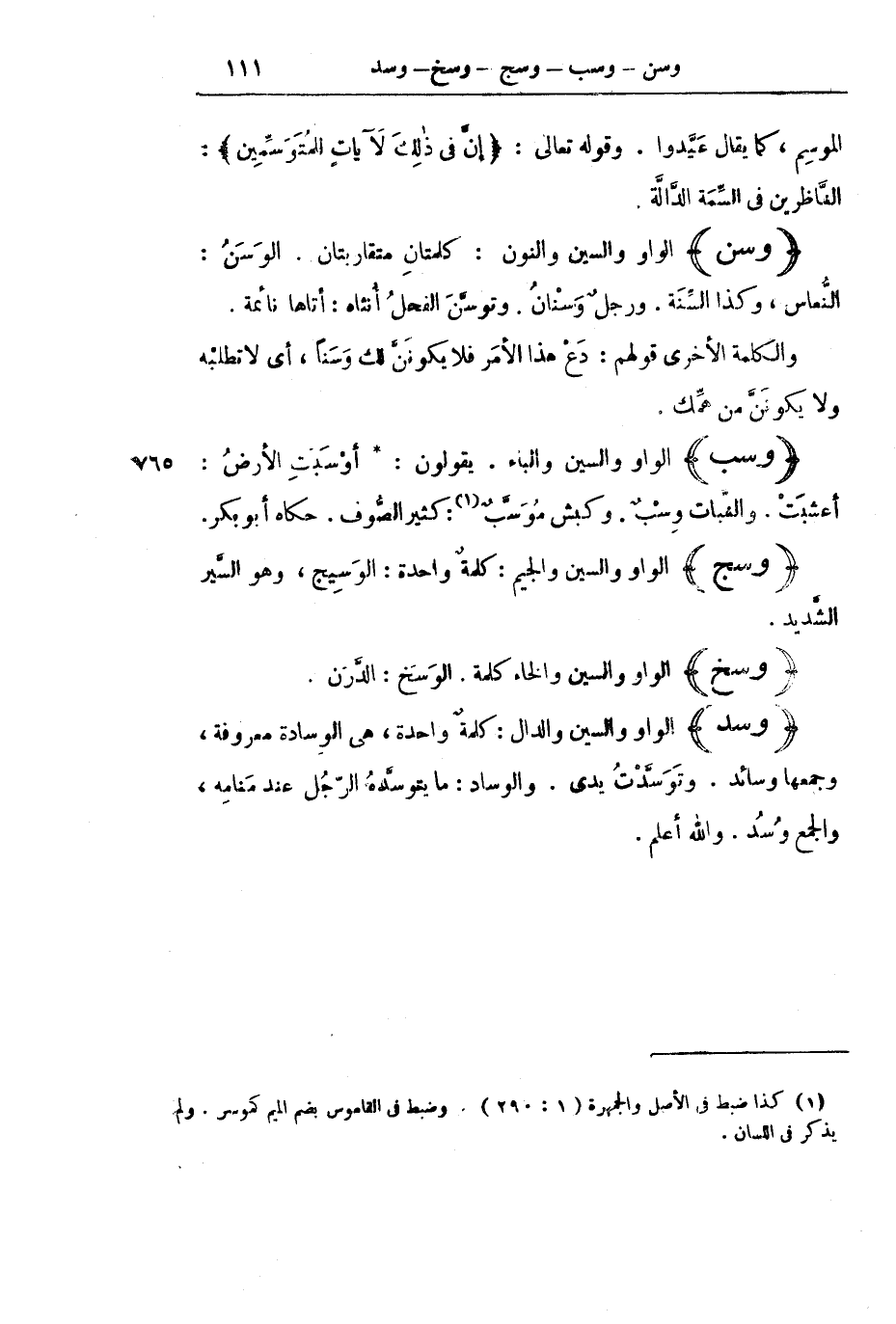 وَالْكَلِمَةُ الْأُخْرَى قَوْلُهُمْ: دَعْ هَذَا الْأَمْرَ فَلَا يَكُونَنَّ لَكَ وَسَنًا، أَيْ لَا تَطْلُبْهُ وَلَا يَكُونَنَّ مِنْ هَمِّكَ.