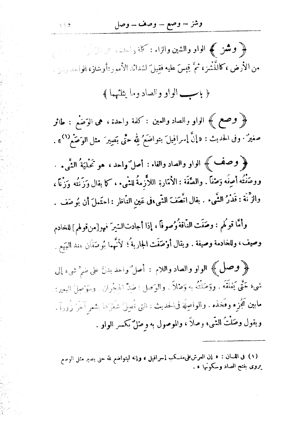 [بَابُ الْوَاوِ وَالصَّادِ وَمَا يَثْلِثُهُمَا]
